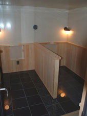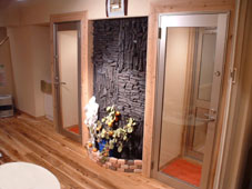 ロビーの壁に備長炭を埋め込みマイナスイオンの恩恵を最大限に生かしています。とても静かな雰囲気です。