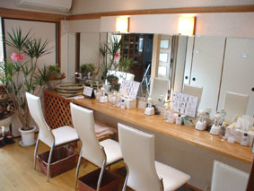 岩盤浴の後はセルフエステルームで美顔コースはいかがですか、超音波美顔機をご用意致しております。